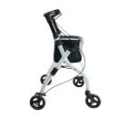 Balkonik ARmedical Compact wyposażony jest w cztery bezobsługowe, antypoślizgowe koła PVC o średnicy 6 cali, z czego przednie koło jest skrętne, co zwiększa zwrotność i ułatwia omijanie przeszkód. Zastosowany hamulec z funkcją blokady postojowej skutecznie zabezpiecza balkonik podczas postoju, a jego konstrukcja umożliwia łatwą obsługę jedną ręką. Dodatkowym atutem jest praktyczna torba na zakupy oraz taca, które zwiększają funkcjonalność sprzętu w codziennych sytuacjach. Balkonik ARmedical Compact stanowi idealne rozwiązanie dla osób, które potrzebują niewielkiego, lekkiego i niezawodnego wsparcia w aktywnym i możliwie niezależnym stylu życia.