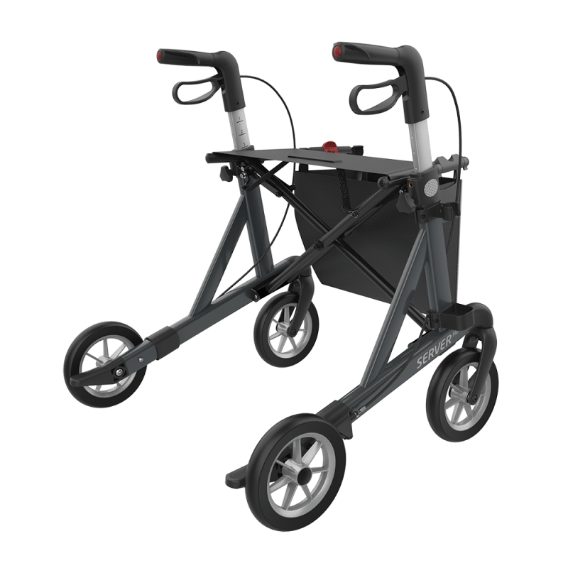 Rehasense Server HD to lekki rollator aluminiowy o maksymalnej nośności 200 kg z dużą (5 kg) torbą na zakupy. Balkonik posiada przyjazną dla użytkownika i łatwo regulowaną wysokość uchwytu oraz opatentowany, czerwony zatrzask zabezpieczający „Click & Safe”. Ergonomiczne uchwyty pod belkami mocującymi do podnoszenia i przenoszenia chodzika zapewniają najwyższy komfort użytkowania. Wszechstronne odblaski bezpieczeństwa dostępne są dla torby na zakupy, ramy i uchwytów. Balkonik posiada duży wybór akcesoriów, takich jak pasy oparcia, torby, taca, obsługa hamulca jedną ręką, hamulec zwalniający i parasol typu rollator.