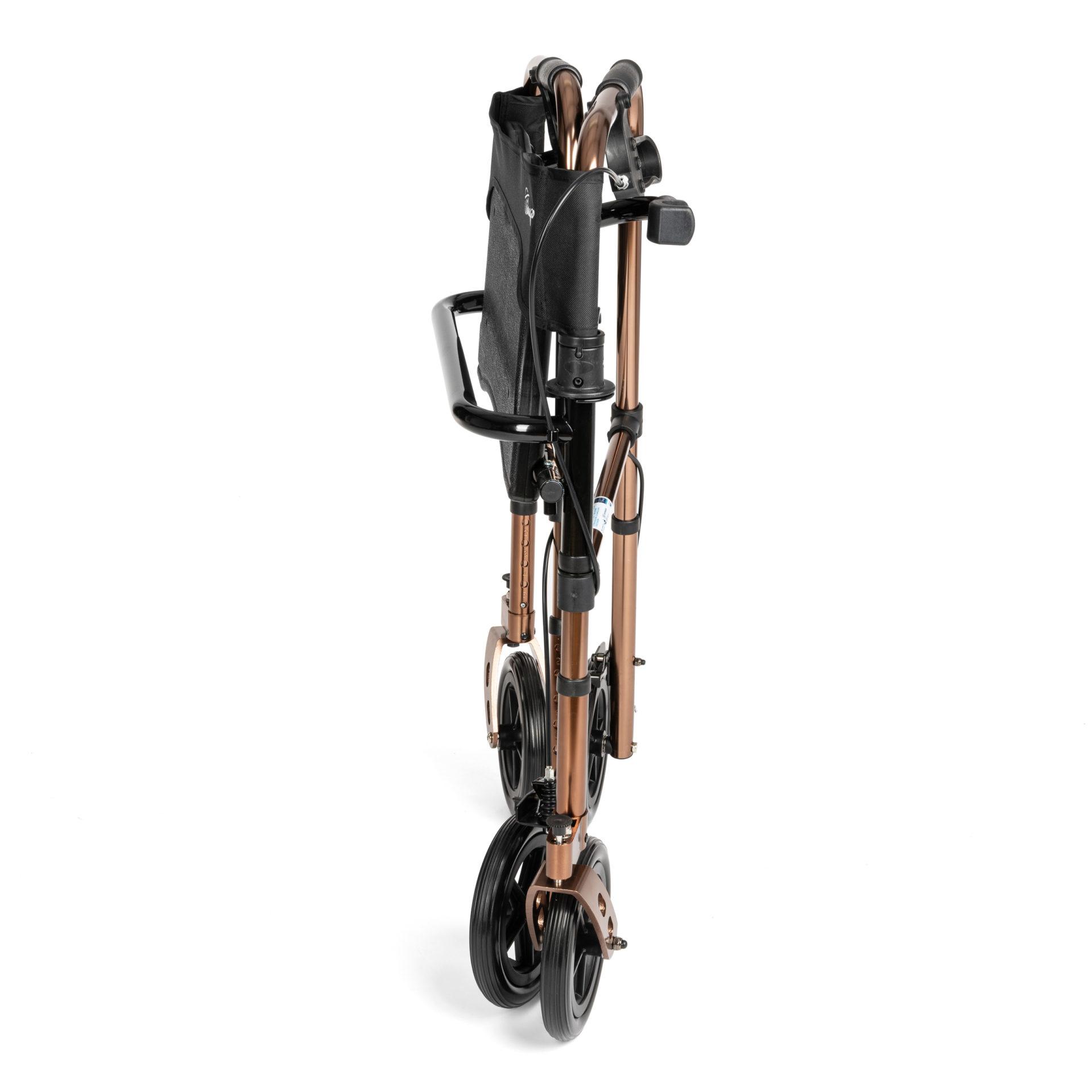 Balkonik DEFENDER wyposażony został w przednie koła obrotowe o średnicy 8 cali, które można blokować w zależności od potrzeb. Zapewniają one płynne manewrowanie, ułatwiają poruszanie się w ciasnych pomieszczeniach i jednocześnie gwarantują stabilność na różnych powierzchniach. Po złożeniu balkonik zajmuje bardzo mało miejsca, co sprawia, że jego przechowywanie w domu oraz transport w samochodzie jest wyjątkowo łatwy i wygodny. Dzięki temu zawsze można mieć go przy sobie, bez problemu związanego z gabarytami sprzętu.