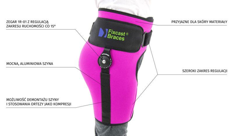 Dzięki możliwości całkowitego unieruchomienia stawu lub jego częściowego odciążenia, FIX-KD-19 skutecznie redukuje stan zapalny i ból, jednocześnie zapobiegając dalszemu pogłębianiu się patologii stawu biodrowego. Stała kompresja stawu wspiera mikrokrążenie, zmniejsza obrzęk oraz poprawia komfort codziennego funkcjonowania dziecka. Orteza jest dostępna w wersji prawej i lewej, a jej kompaktowe wymiary (28 lub 37 cm długości) pozwalają na łatwe dopasowanie do wzrostu i sylwetki użytkownika.