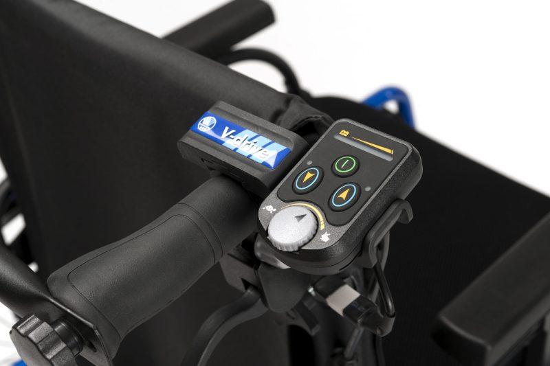 V-drive wspomaga asystenta osoby na wózku inwalidzkim w przypadku gdy nie posiada wystarczającej siły do samodzielnego pchania wózka albo w wymagających wysiłku sytuacjach, takich jak pchanie wózka pod górę zbocza lub wzgórza. Urządzenie zapewnia dodatkową moc wspomagającą popychanie.