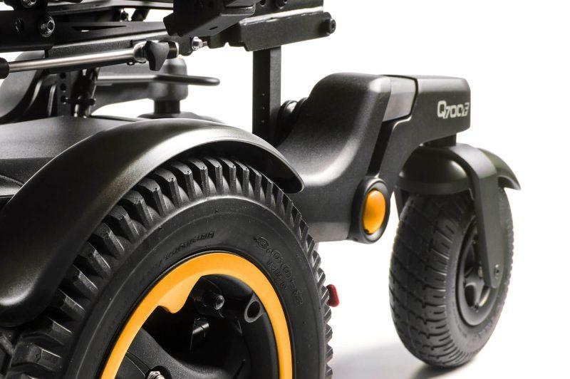 Żyroskopowa kontrola trakcji. Wiele wózków elektrycznych z napędem na przednie koła napotyka trudności z prowadzeniem tylnych kółek przy dużej prędkości. Dzięki (opcjonalnemu) systemowi żyroskopowej kontroli trakcji Q700 F automatycznie wykrywa i koryguje najmniejsze odchylenie od kierunku jazdy. Zapewniając precyzyjną jazdę, zmniejsza liczbę czynności fizycznych lub poznawczych wymaganych do utrzymania wózka na właściwym torze, dzięki czemu jazda będzie mniej wymagająca (zwłaszcza w przypadku korzystania ze specjalnych elementów sterujących).