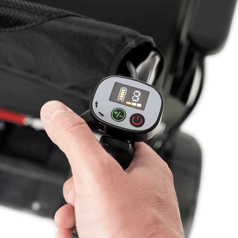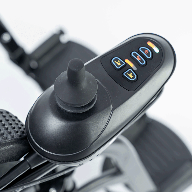 Wózek oferuje funkcjonalność w zakresie regulacji i dostosowania do indywidualnych potrzeb użytkownika. Posiada odchylane podłokietniki, które ułatwiają przesiadanie się, a także regulowany biodrowy pas bezpieczeństwa zapewniający dodatkową stabilizację. Możliwość montażu panelu sterującego po lewej lub prawej stronie umożliwia dostosowanie obsługi do preferencji użytkownika. Podnóżki są odchylane oraz demontowalne, a dodatkowo można regulować ich długość, co pozwala na jeszcze lepsze dopasowanie pozycji nóg i zwiększenie wygody.