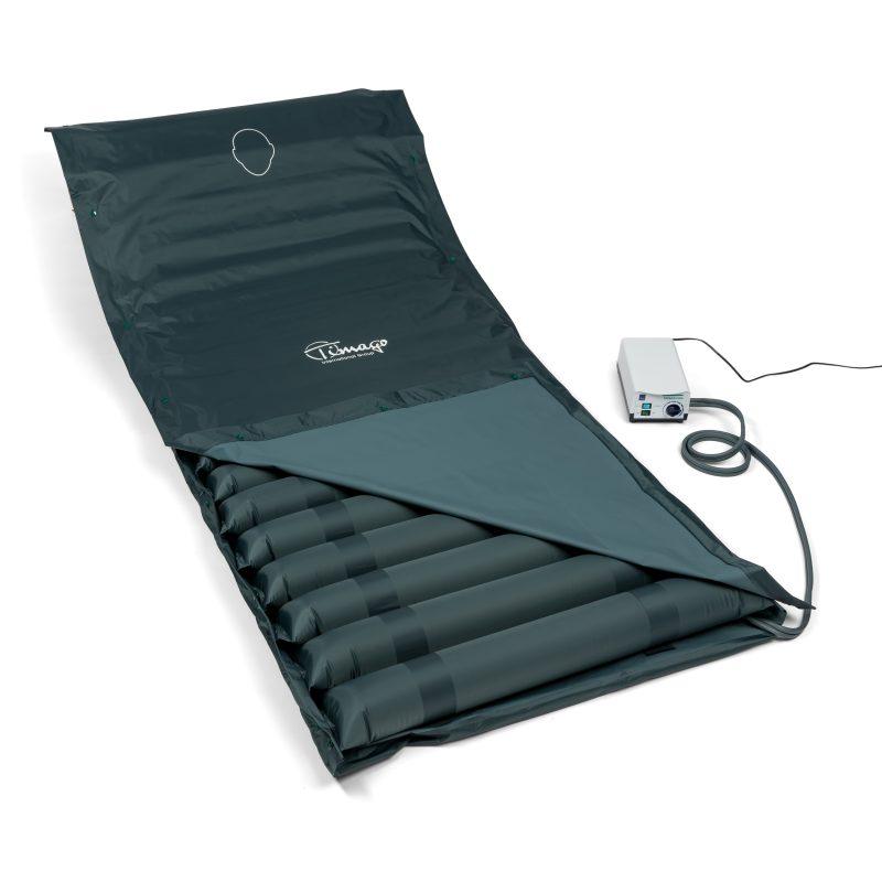 Timago TGR-Y MR 001-2 to materac przeciwodleżynowy rurowy z kompresorem dla osób do 130 kg wagi. Urządzenie poprzez stałą zmianę punktów podparcia osoby leżącej minimalizuje ucisk na części ciała najbardziej narażone na powstawanie odleżyn i pozwala na uniknięcie bądź zmniejszenie ich występowania. Materac występuje w opcji z lub bez funkcji statycznej. Materac wykorzystywany jest w profilaktyce przeciwodleżynowej oraz w leczeniu odleżyn do I stopnia (wg. NPUAP / EPUAP).