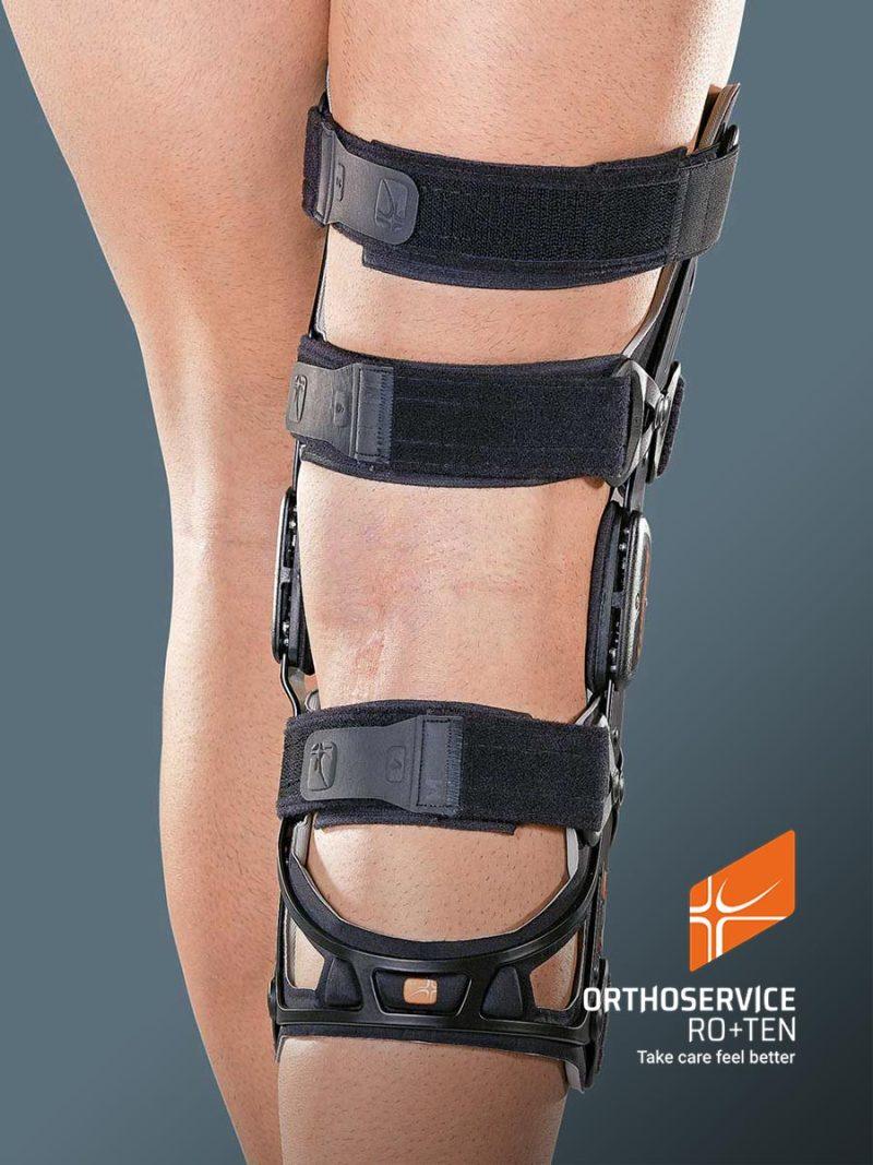 Pasy ortezy wypełnione są pianką MTP i welurem, co sprawia, że są przyjazne dla skóry, bezszwowe i nie powodują otarć. Bardzo płaski zawias policentryczny umożliwia łatwe dostosowanie ustawień za pomocą klinów, oferując różne opcje, takie jak wyprost, zgięcie i unieruchomienie.