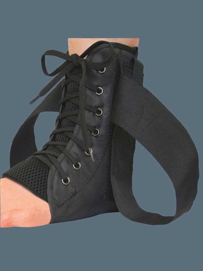 Orteza posiada specjalną strukturę wykonaną z nylonu z podwójną warstwą wokół oczek, co gwarantuje nie tylko wyjątkową trwałość, ale także stabilność produktu. System sznurowania umożliwia precyzyjne dopasowanie do kształtu stopy pacjenta, co pozwala na indywidualne dostosowanie wsparcia. Wnętrze ortozy zawiera język ochronny na podbiciu stopy, zapewniający dodatkową ochronę i komfort noszenia.