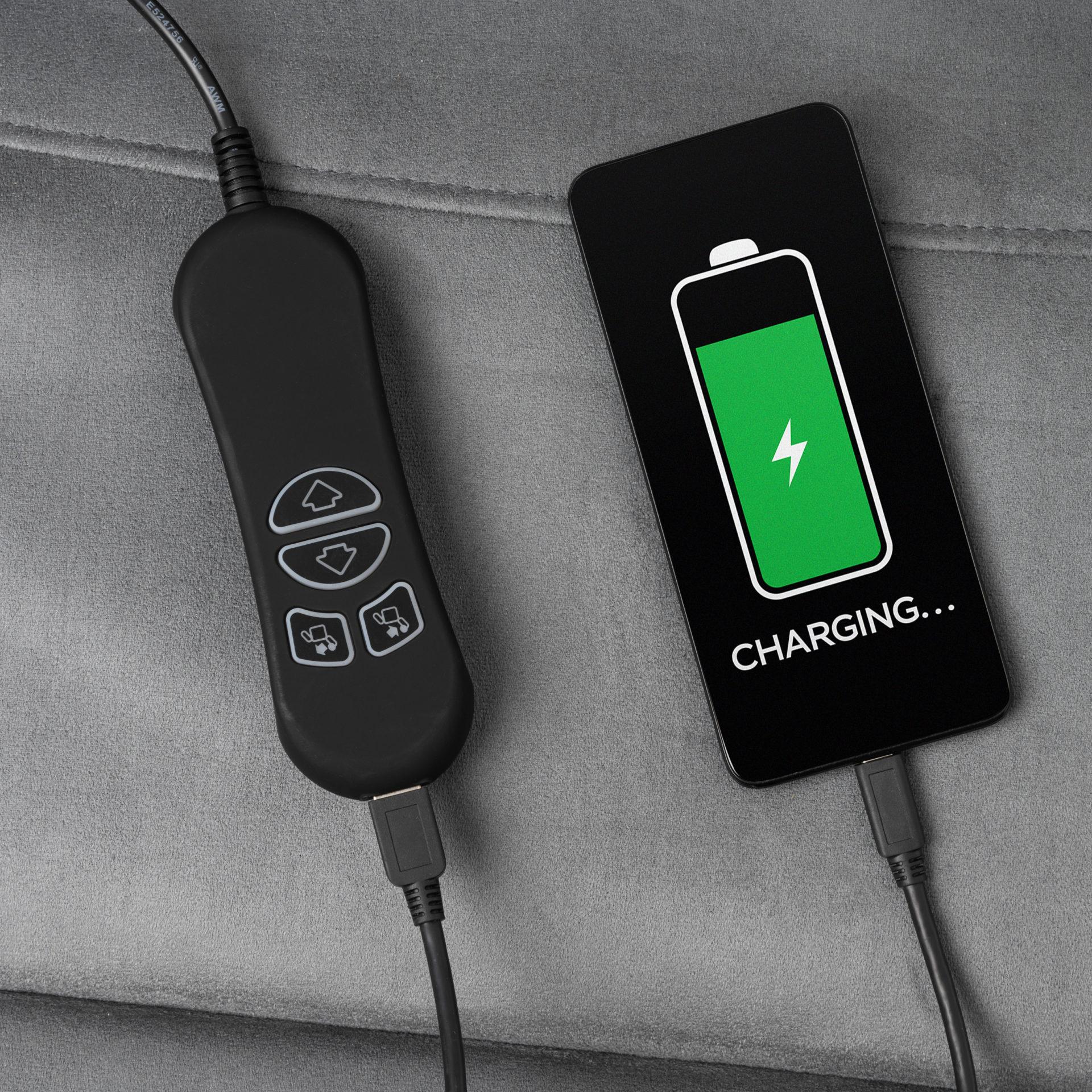 Fotel Relax wyposażony jest w podwójny, niezależny napęd, który pozwala na szeroki zakres regulacji. Użytkownik może swobodnie zmieniać pozycję oparcia i podnóżka, dopasowując ustawienia do swoich potrzeb, a tym samym odciążać kręgosłup i stawy. Regulacja odbywa się za pomocą pilota, który dodatkowo wyposażono w port USB, umożliwiający ładowanie urządzeń elektronicznych. Takie rozwiązanie zwiększa wygodę i sprawia, że fotel staje się nie tylko meblem wypoczynkowym, ale również funkcjonalnym elementem codziennego życia.