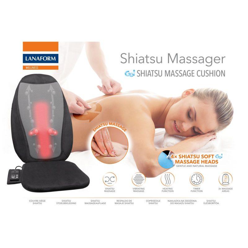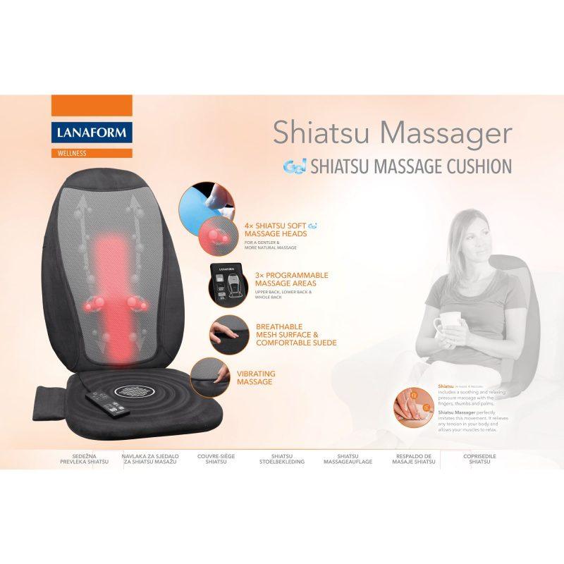 Lanaform Shiatsu Massager to podgrzewana poduszka masująca, która oferuje unikalne doznania dzięki czterem obrotowym głowicom imitującym masaż shiatsu. Ten zaawansowany masażer zapewnia skuteczne rozluźnienie napiętych mięśni, uwalnia napięcia ciała oraz odświeża zmęczoną tkankę, szczególnie w obszarze pleców, ramion i szyi.