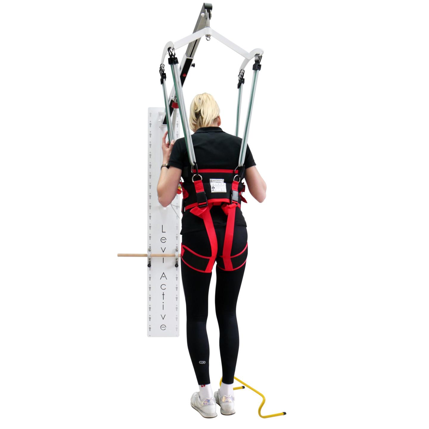 Centralnym elementem zestawu jest kamizelka LeviKam Trainer, która gwarantuje bezpieczeństwo i stabilizację podczas ćwiczeń. Dzięki dynamicznemu odciążeniu ciała pacjent ma możliwość swobodnego wykonywania ruchów, co sprawia, że rehabilitacja jest nie tylko skuteczniejsza, ale także bardziej komfortowa. LeviActive daje szerokie możliwości regulacji – zarówno w zakresie wysokości podparcia poszczególnych partii ciała, jak i poziomu odciążenia, który można dostosować dzięki specjalnym gumom. Pozwala to na precyzyjne dopasowanie terapii do aktualnych możliwości i potrzeb pacjenta.