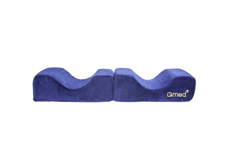 W pozycji rozłożonej poduszka pełni funkcję podpórki dla dolnej części nóg, wspomagając właściwe pozycjonowanie pacjenta w warunkach domowych lub szpitalnych. Może być z powodzeniem wykorzystywana w profilaktyce przeciwodleżynowej, szczególnie u osób unieruchomionych lub obłożnie chorych. Dzięki temu, że pianka z pamięcią kształtu reaguje na temperaturę ciała, poduszka zapewnia indywidualne dopasowanie do użytkownika, a jej używanie nie powoduje uczucia ucisku czy dyskomfortu. Ergonomiczny kształt oraz kompaktowy rozmiar sprawiają, że Qmed Knee&Leg Spacer łatwo dopasowuje się do różnych pozycji ciała, niezależnie od postury.