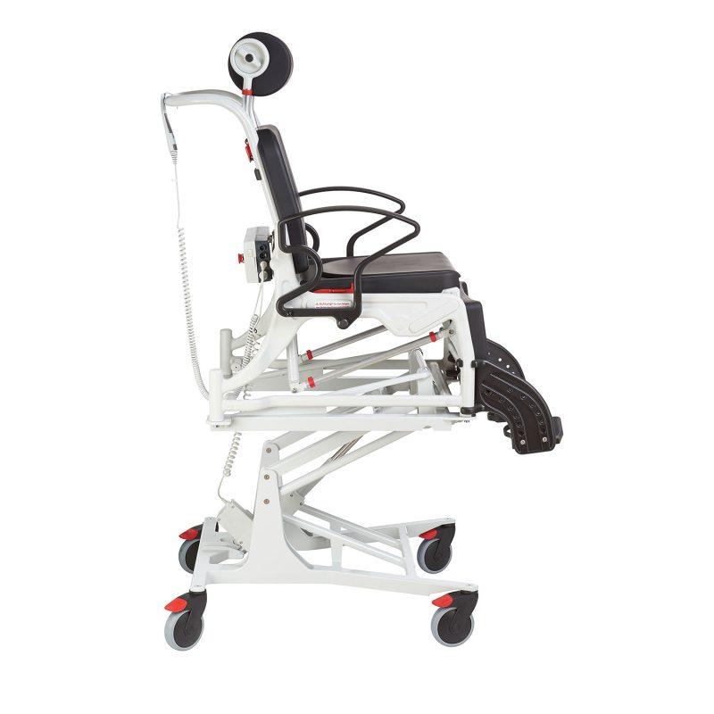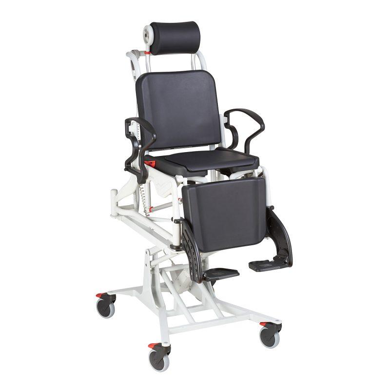 Rebotec Phoenix Hydraulic to wysokiej jakości wózek multipozycyjny z hydrauliczną regulacją. Wyposażony w regulowany zagłówek i odchylane podłokietniki. Wózek pozwala na jednoczesną regulację nachylenia oparcia, siedziska i podparcia łydek. Podłokietniki uchylne gwarantują łatwe przesiadania, a bardzo wygodna, komfortowa tapicerka zapewnia komfort użytkowania i łatwość czyszczenia. Wózek wyposażony został w demontowalne, uchylne podnóżki i cztery skrętne 5 calowe koła z hamulcami.