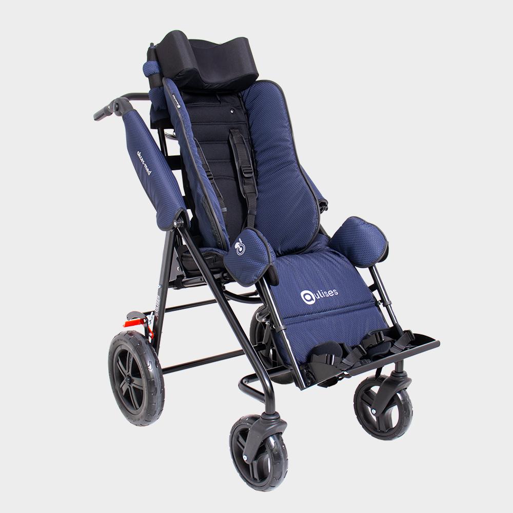 Jednym z kluczowych atutów modelu ULISES EVO PRO™ jest zaawansowany system stabilizacji ciała, obejmujący peloty oraz pasy bezpieczeństwa, które pomagają utrzymać prawidłową pozycję siedzącą i ograniczają ryzyko niekontrolowanych ruchów. Stabilna i wytrzymała konstrukcja wózka zapewnia użytkownikowi poczucie pewności, a opiekunom ułatwia bezpieczne prowadzenie i obsługę sprzętu. Dodatkowym elementem podnoszącym poziom bezpieczeństwa są odblaskowe wstawki w tapicerce, które zwiększają widoczność wózka po zmroku oraz w trudnych warunkach atmosferycznych.