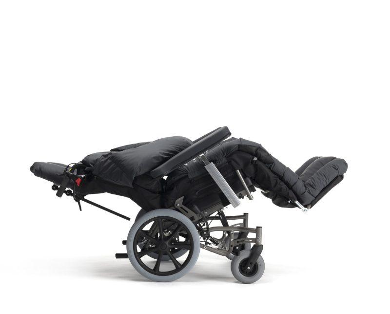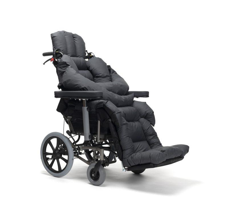 Vermeiren Inovys 2 L70 to wózek inwalidzki specjalny multipozycyjny, doskonałe rozwiązanie zapewniające maksymalny komfort i wsparcie pozycji dla osób z różnymi potrzebami zdrowotnymi. Wyposażony w jednolity system siedziska i oparcia, wnętrze tapicerki stanowią dwa rodzaje granulatu – poliestrowy i silikonowy, które dostosowują się do kształtu ciała, zapewniając właściwy kontur i wsparcie. Osoba siedząca jest otoczona przez poduszki, co sprawia, że czuje się całkowicie bezpiecznie i wygodnie, eliminując olbrzymi dyskomfort oraz poczucie bólu związanego z tradycyjnymi tapicerkami. Wózek wyposażony jest w tylne koła o rozmiarze 16′ z hamulcami bębnowymi dla osoby opiekującej się. Dzięki hamulcom bębnowym zapewniona jest pełna kontrola nad wózkiem, nawet w trudnych warunkach, takich jak podjazdy czy zjazdy o znacznym nachyleniu.