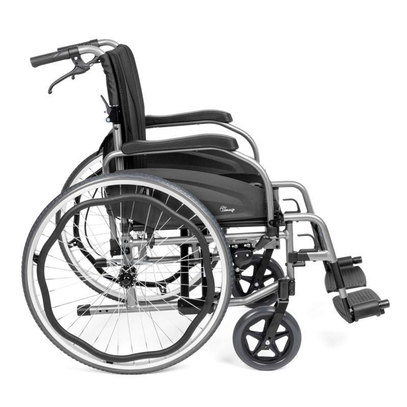 Timago SIMPLE-TIM to nowoczesny aluminiowy wózek inwalidzki stworzony z myślą o osobach mających trudności z samodzielnym poruszaniem się, a także o użytkownikach z dysfunkcjami ruchowymi. Jego konstrukcja została zaprojektowana tak, aby zapewnić wygodę i funkcjonalność zarówno w pomieszczeniach, jak i na zewnątrz. Dzięki swojej uniwersalności wózek doskonale sprawdza się podczas spacerów, transportu czy przemieszczania się na krótkie dystanse.